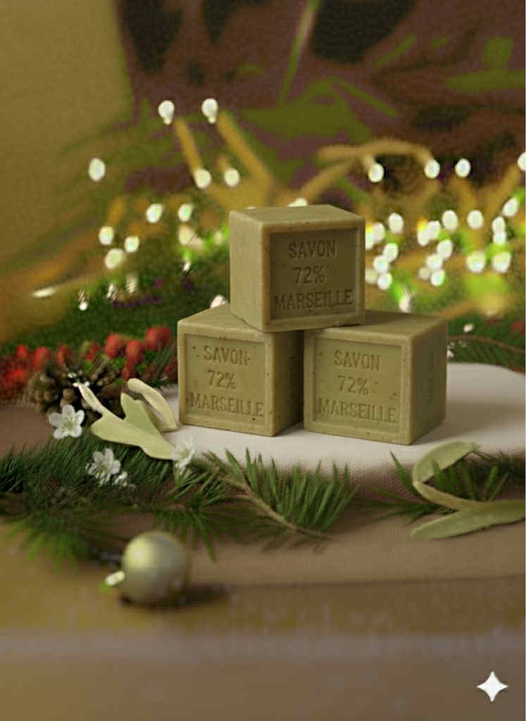 Le mythique Cube de Marseille, un savon extra pur, à base d’huile d’olive (savon vert) ou d’huile de palme (savon beige),contenant les fameux 72% d’huiles. Ce produit aux mille vertus est disponible en cubes.
