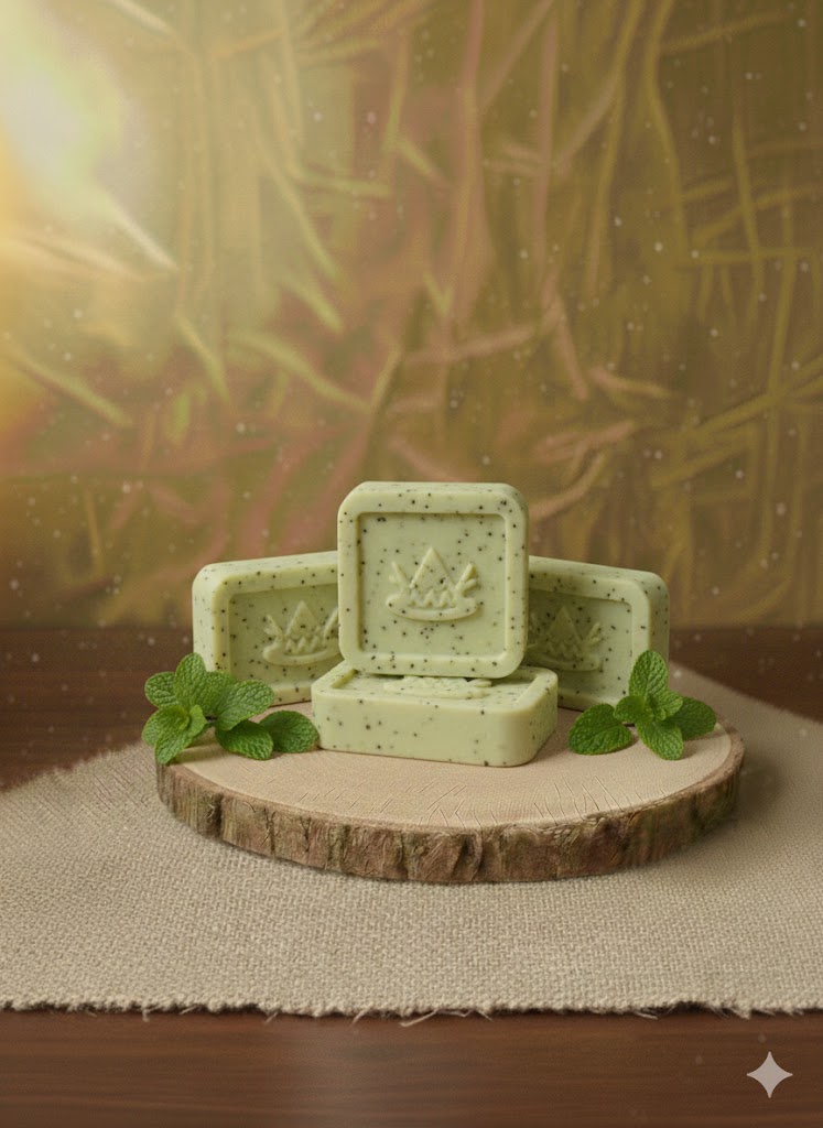 Savon composé d’huile végétales (huile d’olive, huile de chanvre ),de menthe, d’argile verte et de lait d’ânesse.